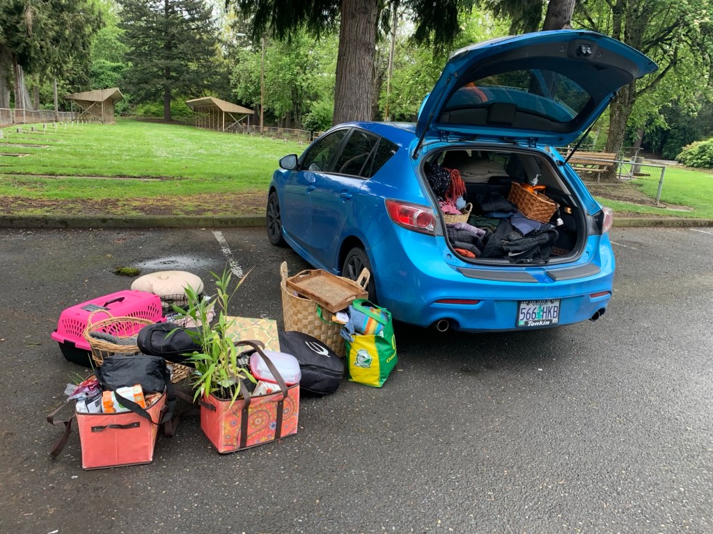All of the worldly possessions I took from my old house, much of which I gave away to the hotel staff upon leaving Portland.
